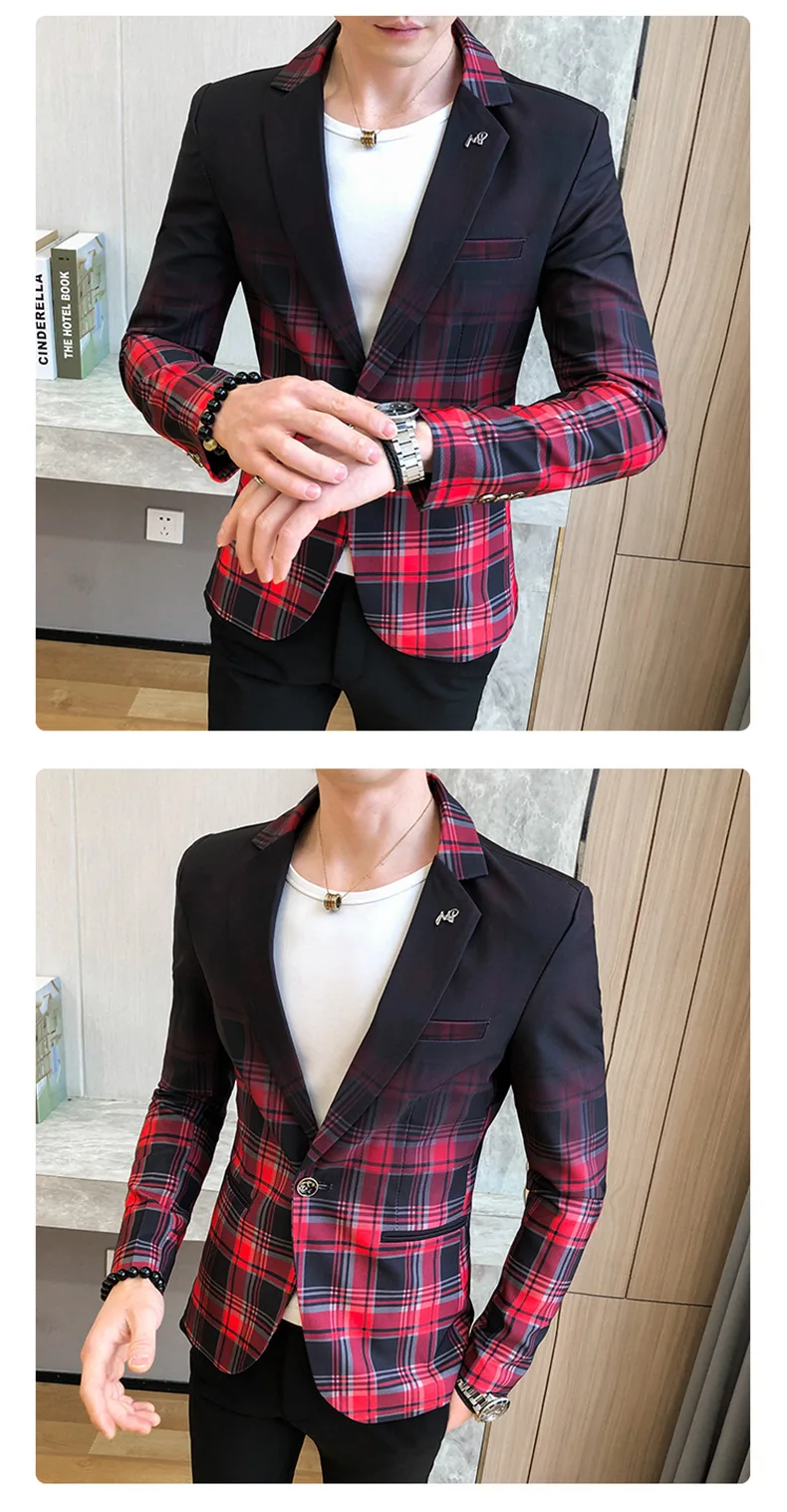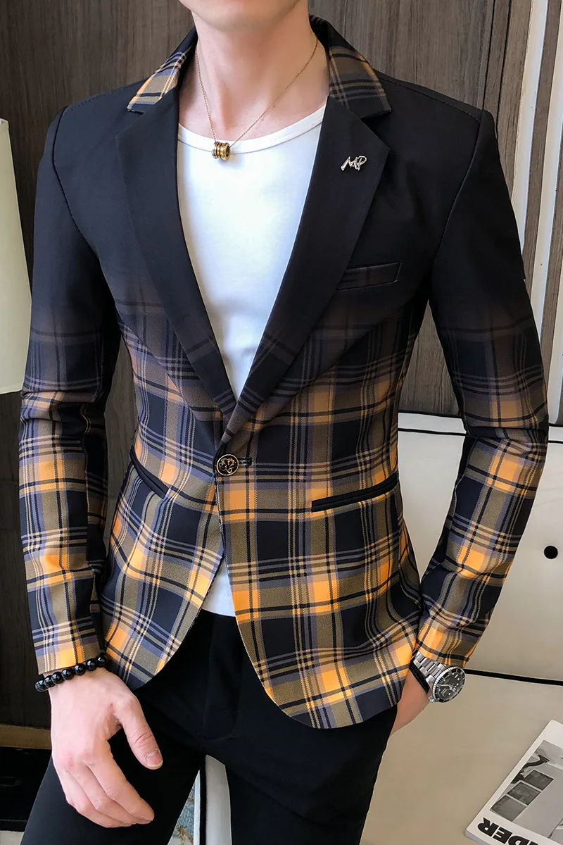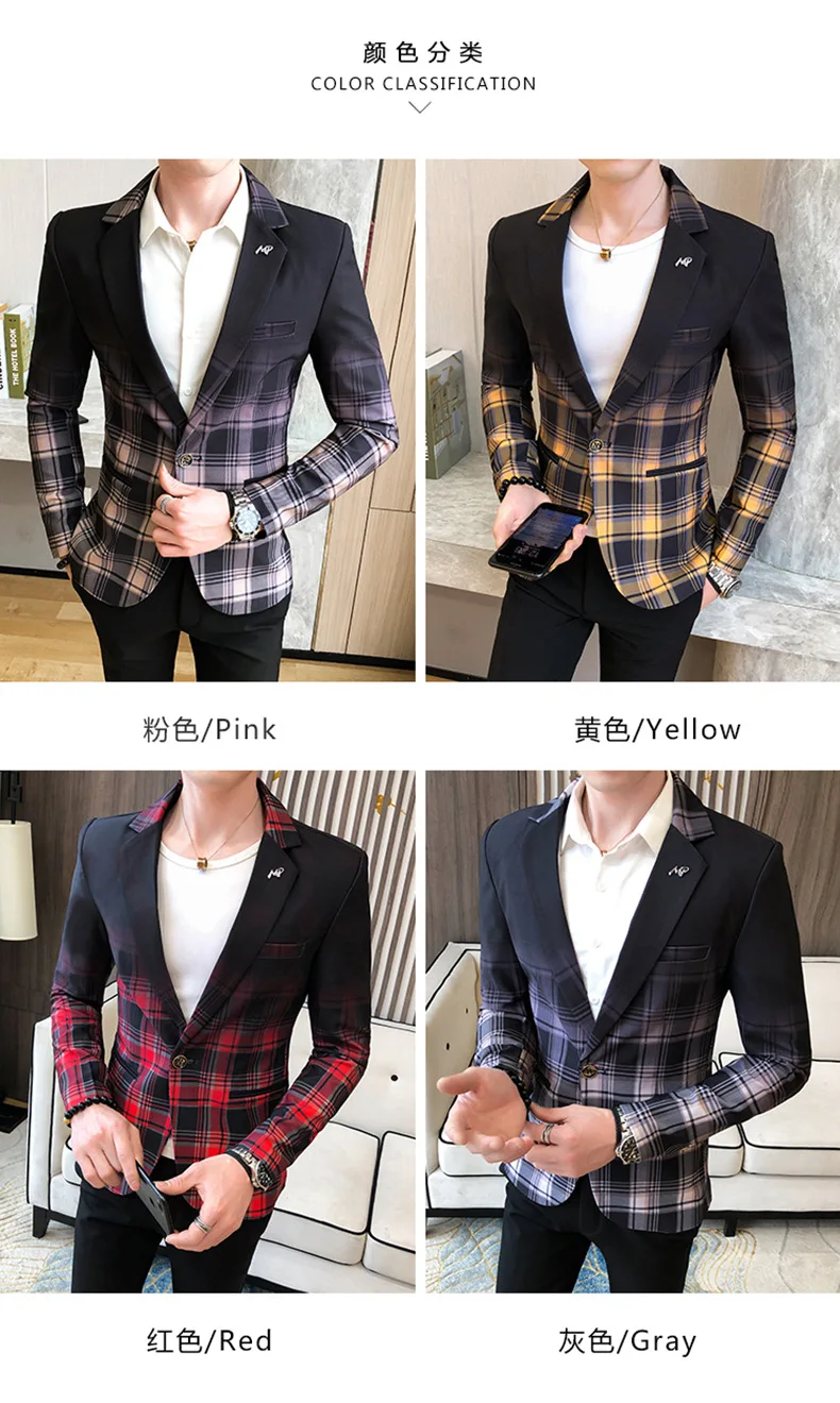 Новинка 2021, Модный повседневный маленький костюм, мужская куртка в Корейском стиле, модный клетчатый Однотонный мужской костюм в западном стиле, куртка, винтажная одежда