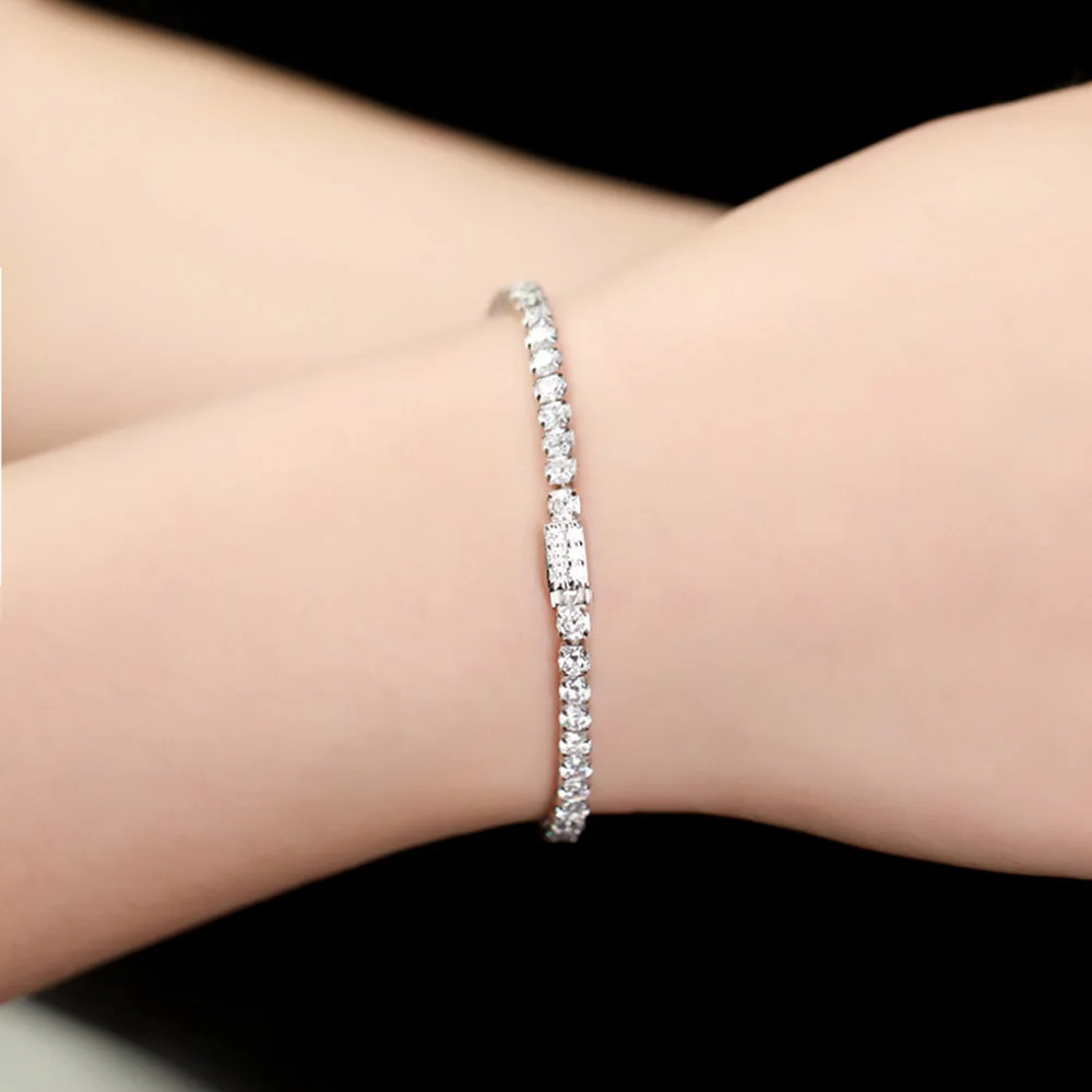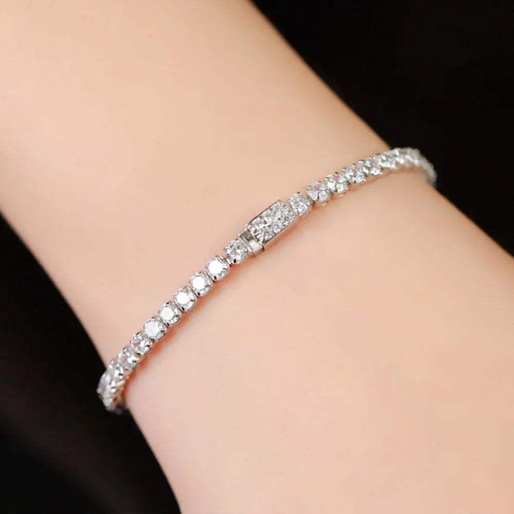 Браслет Теннисный круглыйквадратный из серебра 925 пробы, 15-19 см