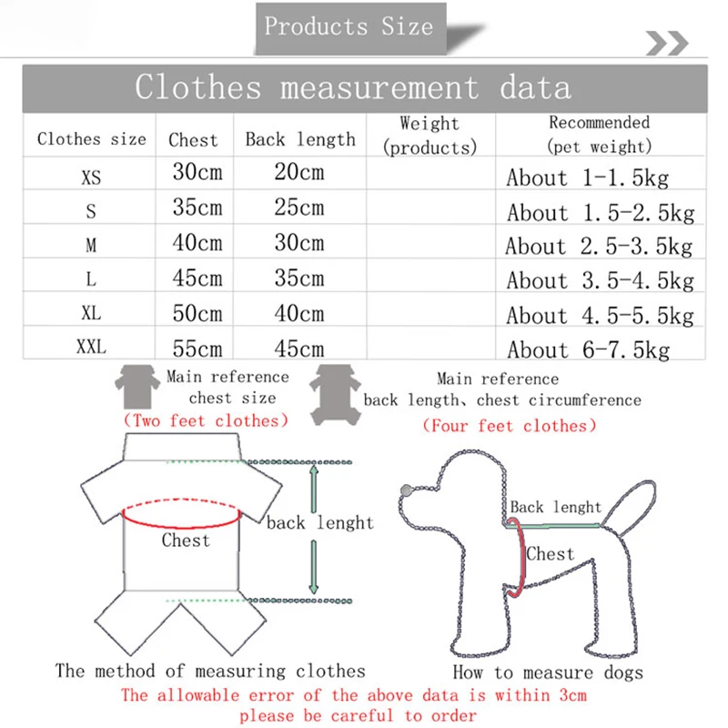 2. Для двух ног, пожалуйста, обратите внимание на обхват груди, и для четырех ног, должны соответствовать обхвату груди и длине спины.