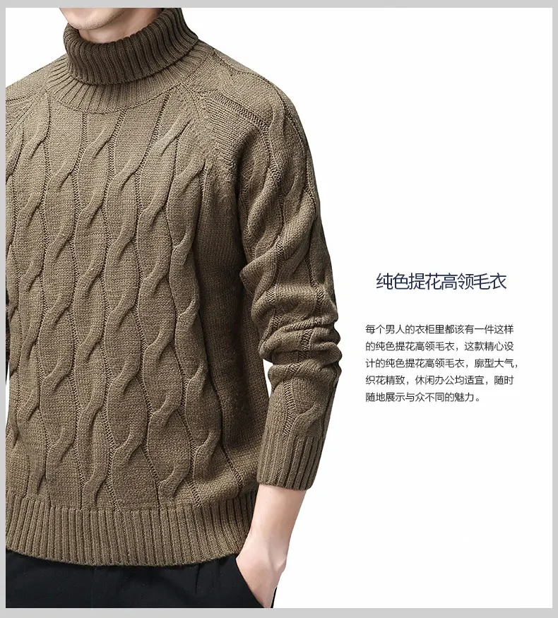 Мужские свитера с высоким воротником, Осень-зима 2020, толстый тепл...