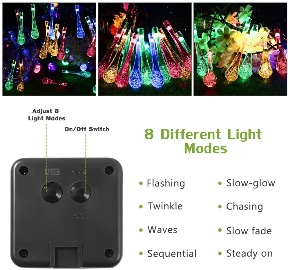 Солнечная лампа, светодиодная уличная гирлянда с каплями воды, 6/5/2 м, 30/20/10 светодиодный, Сказочная гирлянда для праздника, рождественской вечеринки, садовая водонепроницаемая