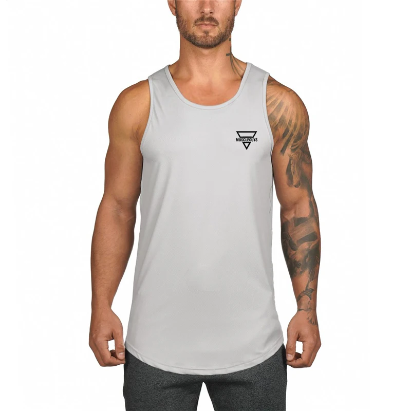 Майка мужская сетчатая, брендовая быстросохнущая майка для фитнеса, тренажерного зала, бодибилдинга, летняя одежда, рубашка без рукавов