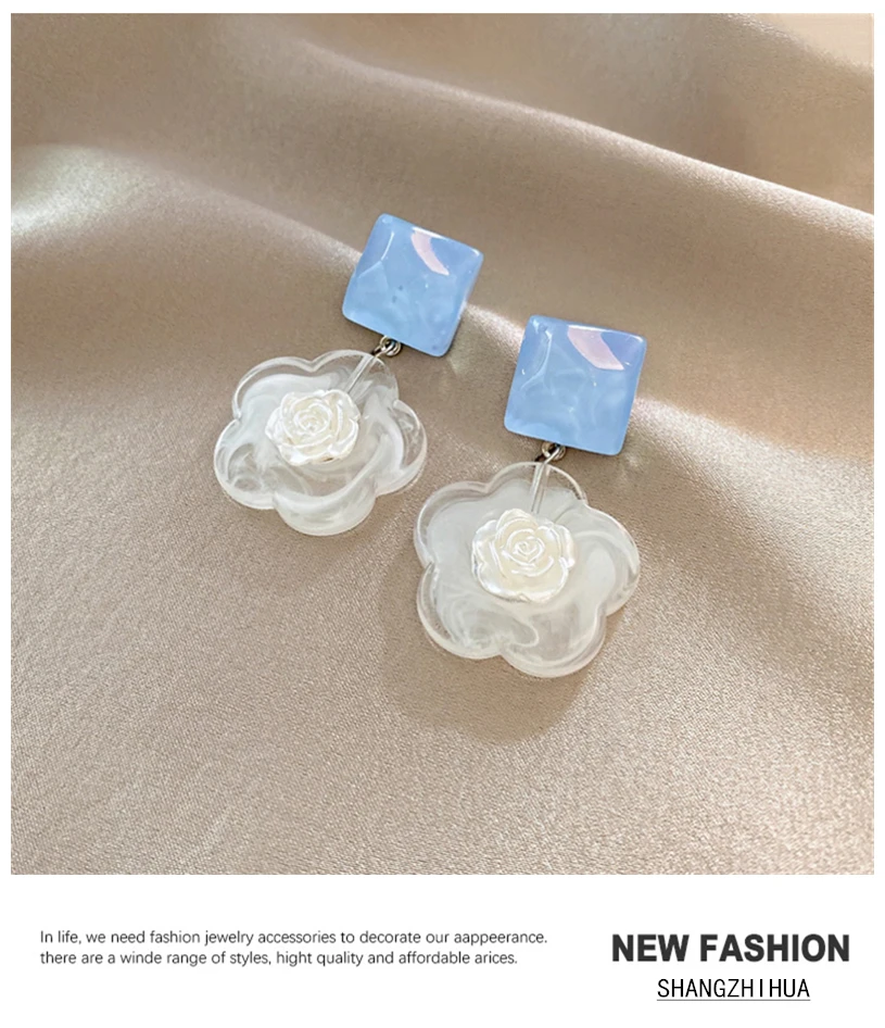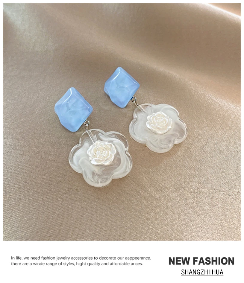 Классические Акриловые серьги SHANGZHIHUA в виде цветка из смолы необычные ювелирные изделия подарок аксессуары для женщин новые популярные девушки в Корее