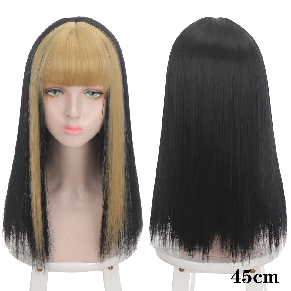 Синтетические длинные прямые женские парики BUQI для косплея, термостойкие искусственные волосы с челкой блонд