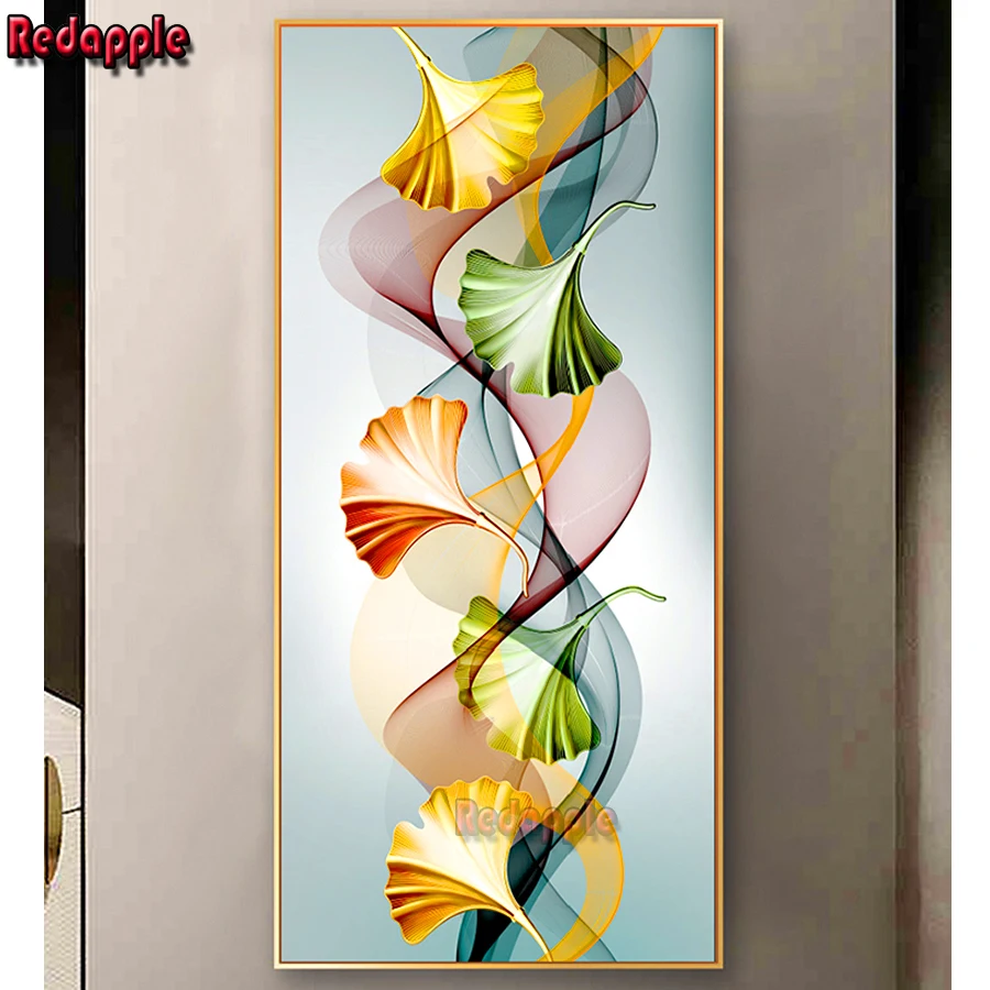 Ginkgo biloba 5 d Алмазная мозаика, большое абстрактное искусство, красочные листья, живопись, декор гостиной, алмазная живопись, вышивка, распродажа,