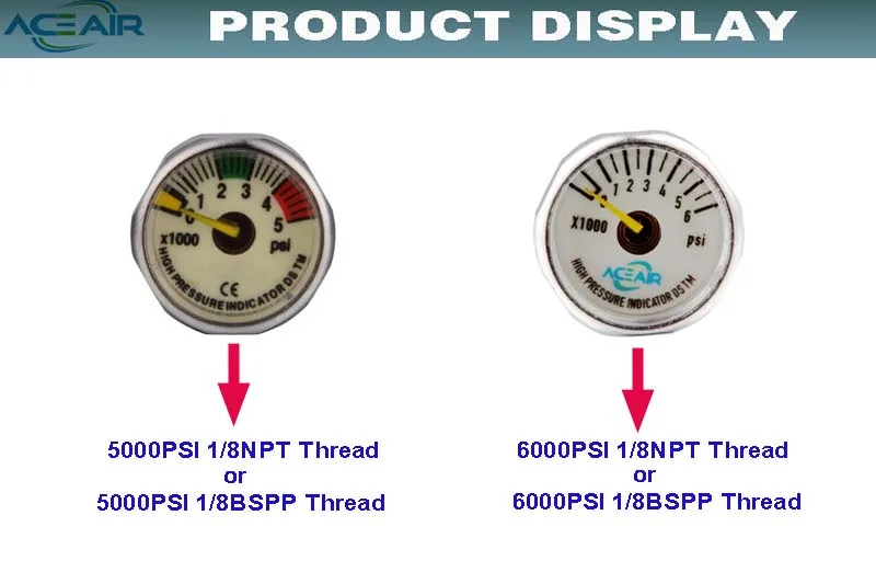 PCP Пейнтбольный воздушный Давление манометр 5000psi 6000psi 1 дюйм световой 1/8NPT 1/8BSPP