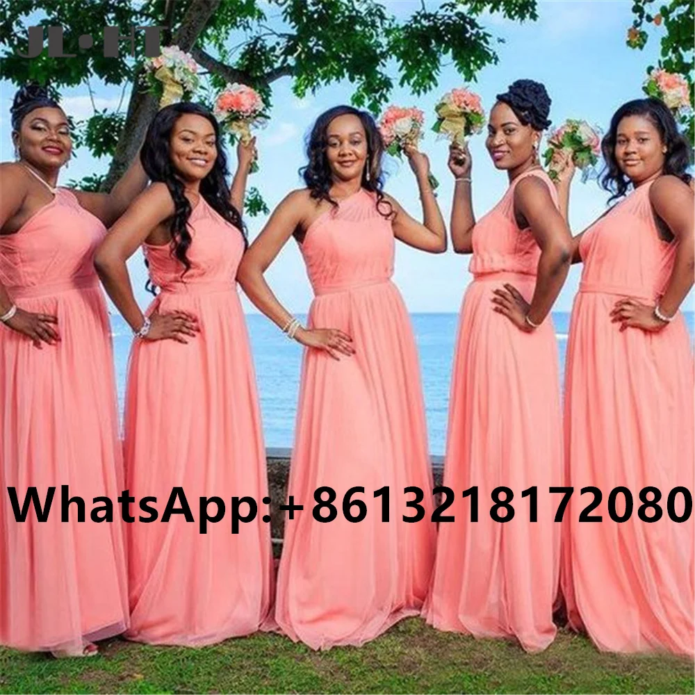 2021 коралловые черные платья для подружки невесты на одно плечо, длинное Плиссированное свадебное платье, шифоновые платья-трапеции для подружек невесты