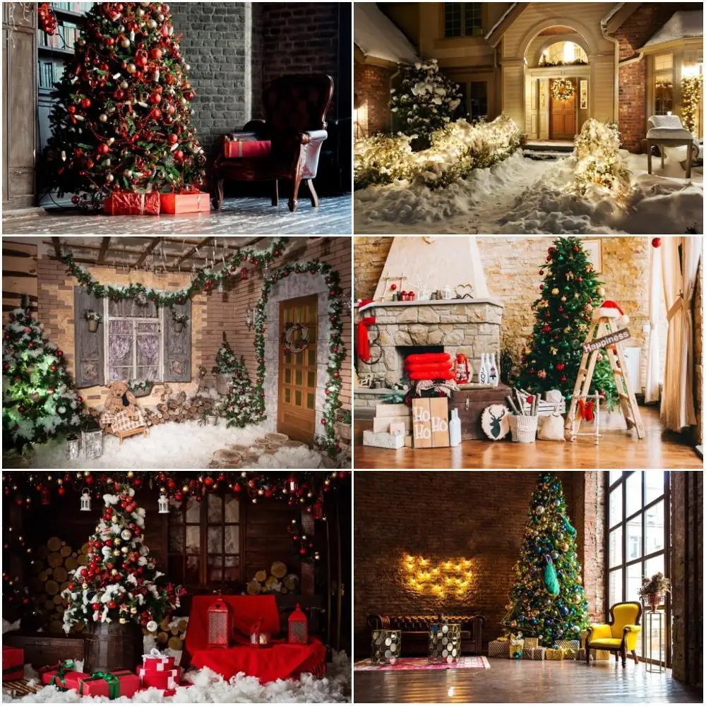 Рождественский фон камин дерево винтажный деревянный дом комната блеск Детская фотография фон для фотостудии виниловый Фотофон