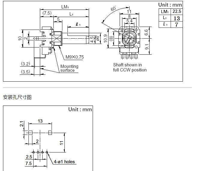 4-контактный потенциометр Rk11k с длиной вала 13 мм, 4-контактный п...
