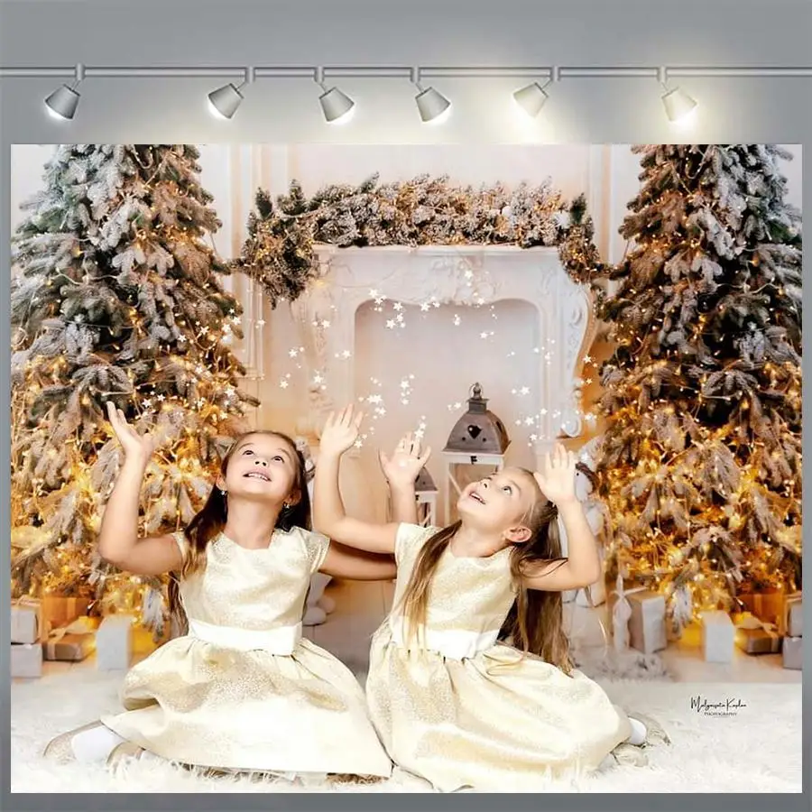 Виниловый фон для студийной фотосъемки с изображением камина рождественской елки праздничного уживечерние