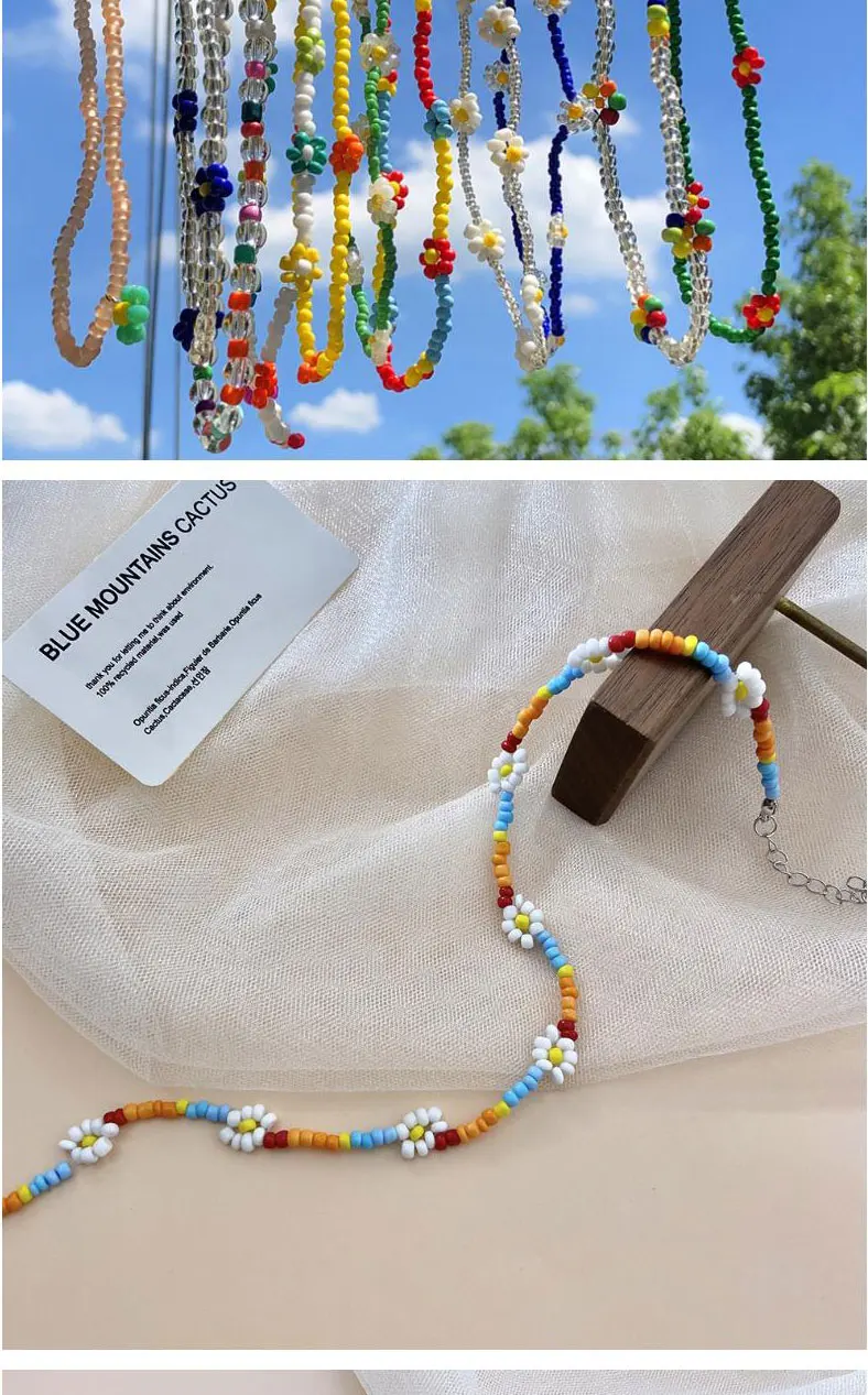Новинка 2021, корейский стиль, яркие Подвески из бисера с цветами, эффектное короткое ожерелье-чокер для женщин