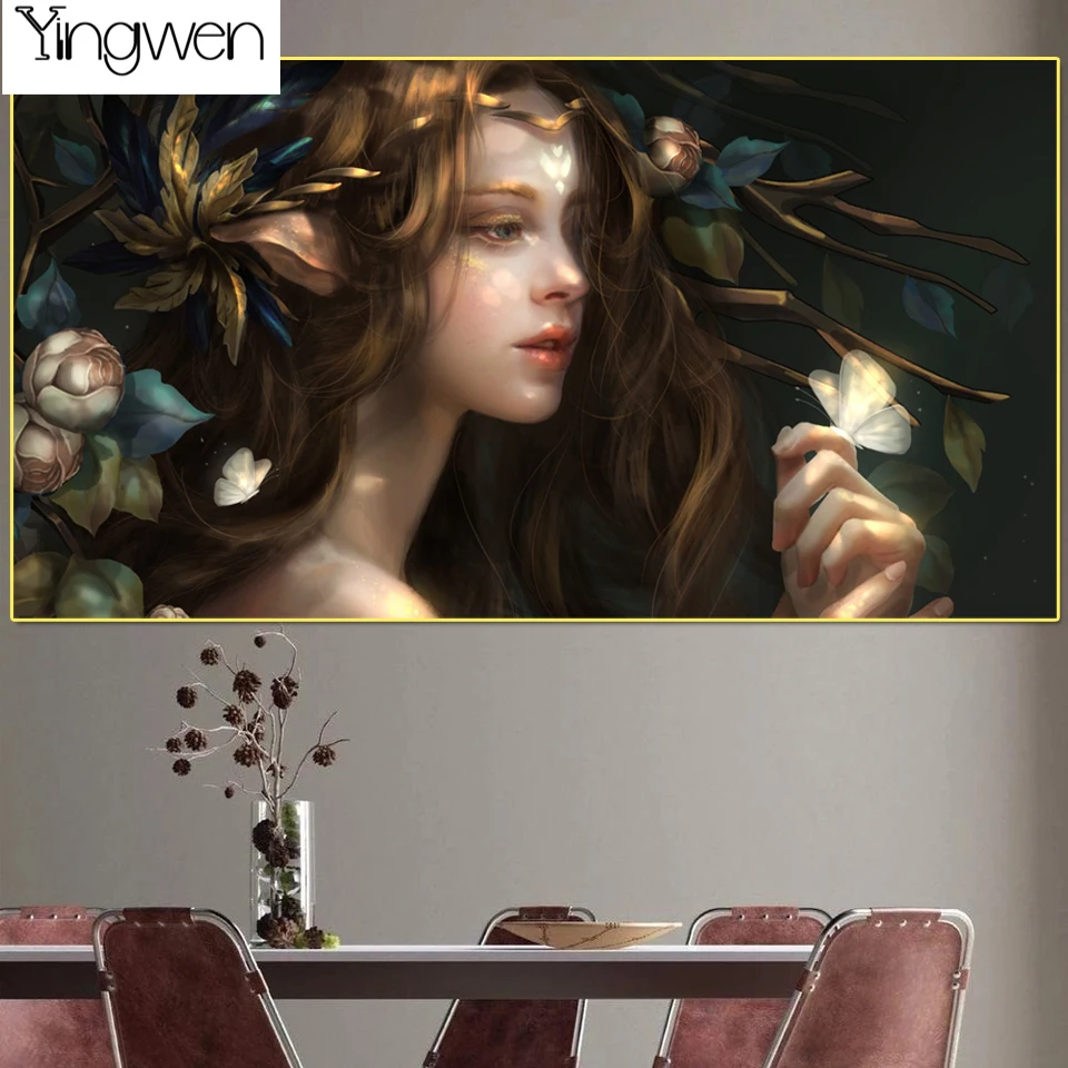 Искусство 5D Diy Алмазная картина Фантазия девушка цветы Бабочка полные изображения для алмазной вышивки наборы крестиков Стразы Декор