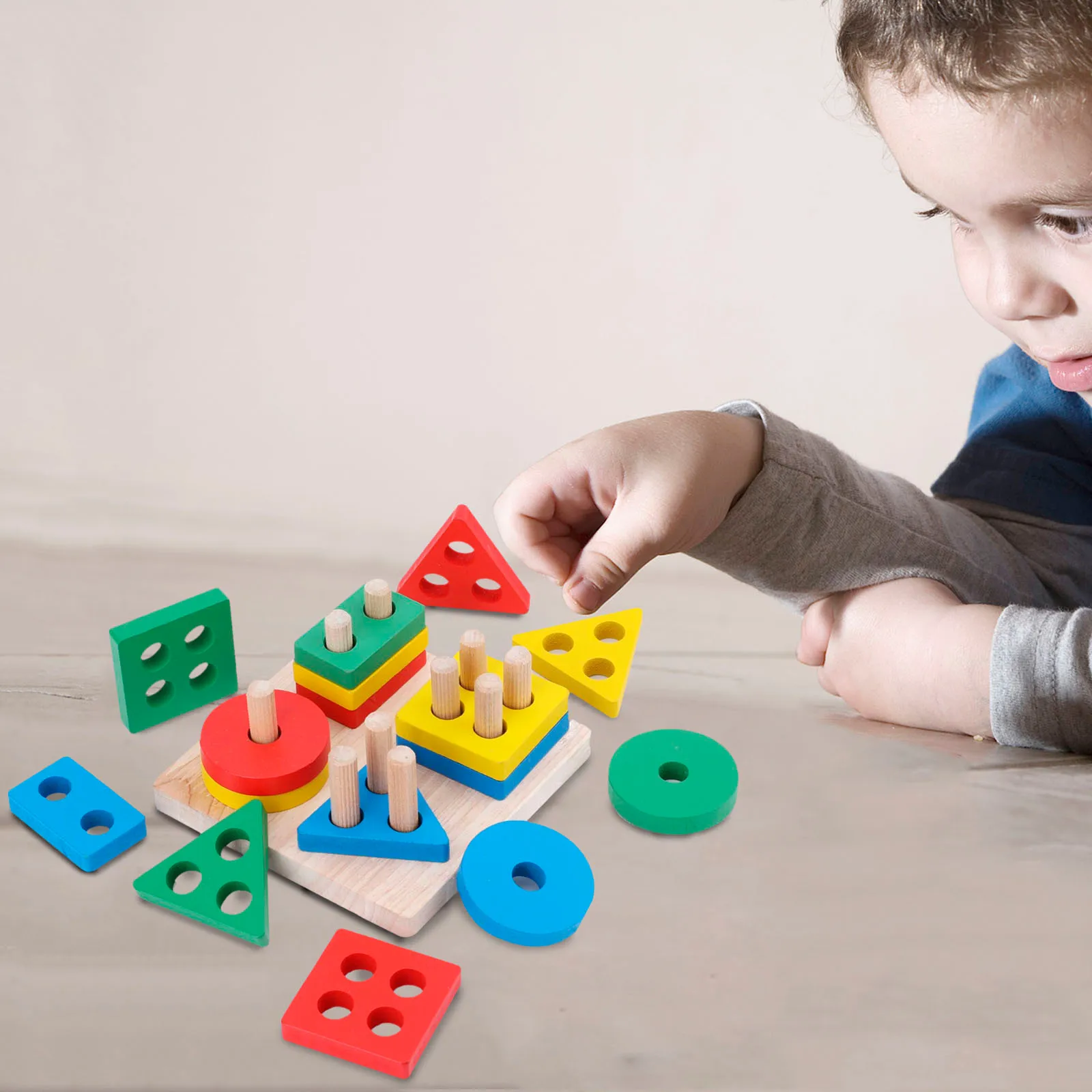 Деревянные сортировочные и складные игрушки в форме сортировщика для малышей Цветные Блоки Пазлы распознавание укладчика Раннее Обучение для мальчиков и девочек 1, 2, 3 лет