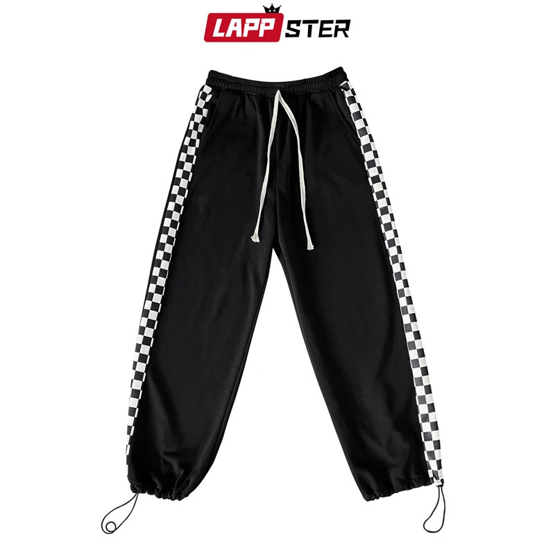 LAPPSTER-Youth уличная одежда черные клетчатые брюки мужские джогге...