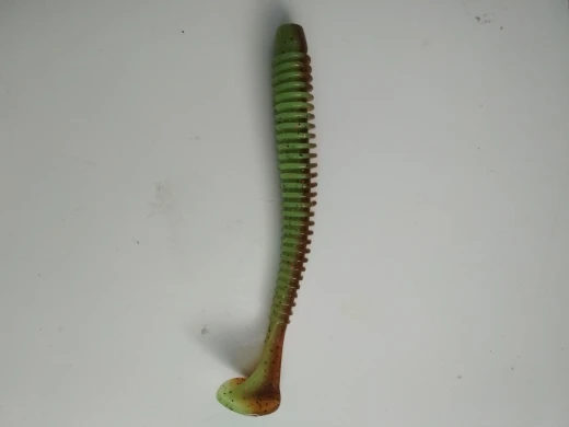 Приманка не понравилась, ни мне, ни окуню, вернее 1 окуня я поймал, но на другие прианки клевало несравнимо лучше. Главная претензия это форма самого тела, оно довольно толстое и короткое, оно совершенно не подходит под офсетные крючки. Офсет #4 слишком длинный, а у #6 слишком маленький поддев для такого высокого тела.