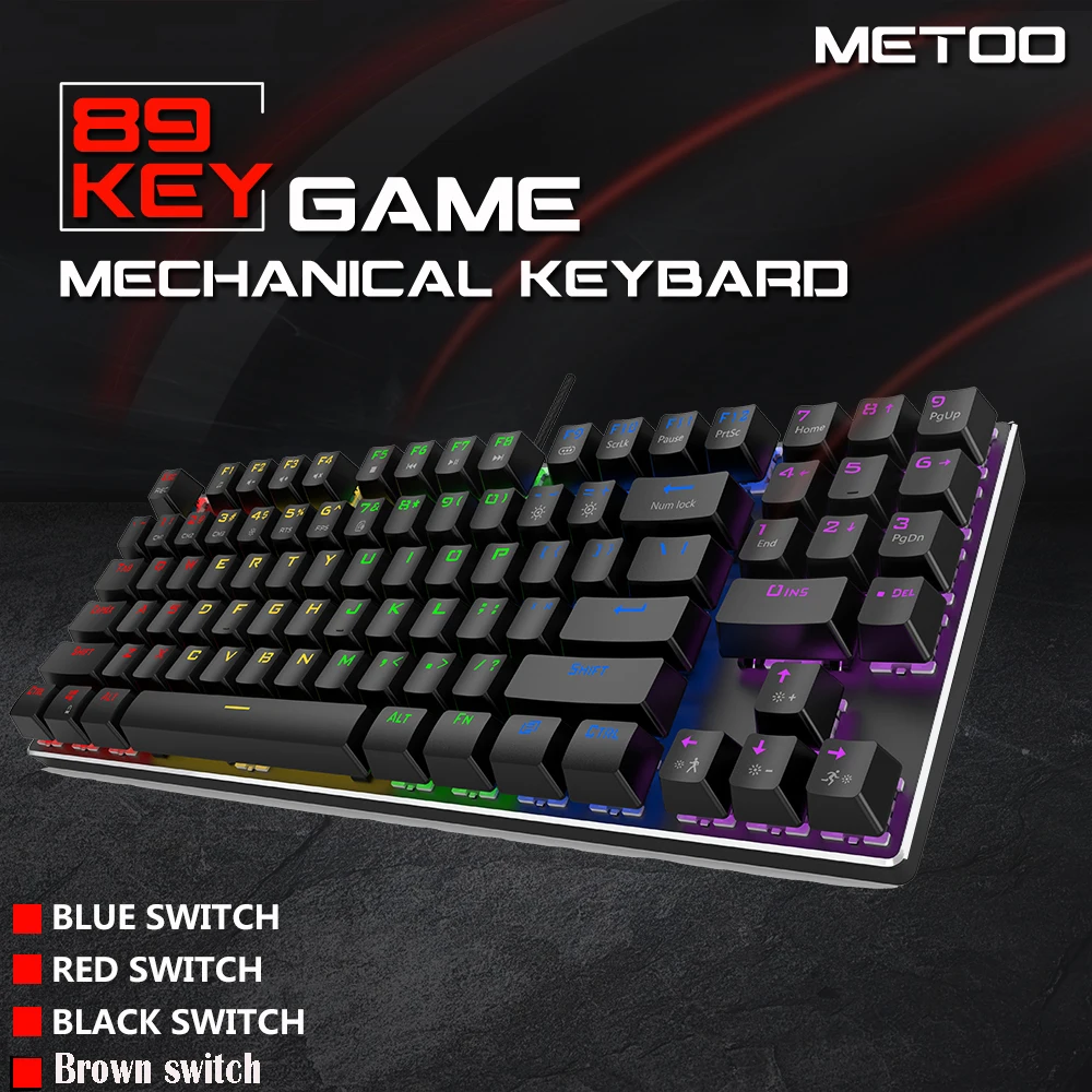 Оригинальная механическая клавиатура metoo, проводная игровая клавиатура с usb, 89key, с защитой от фиктивных нажатий, для геймеров, эргономичная, с краснымсинимкоричневым переключателем