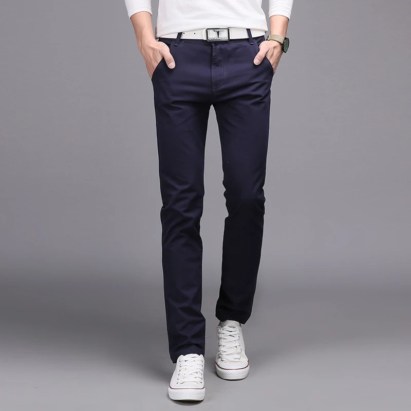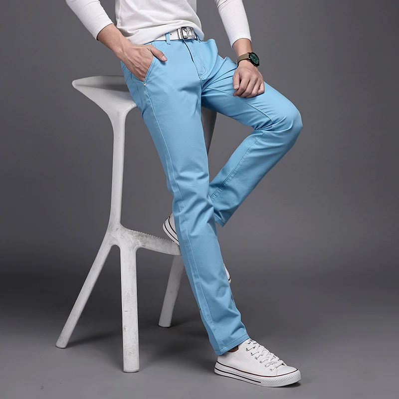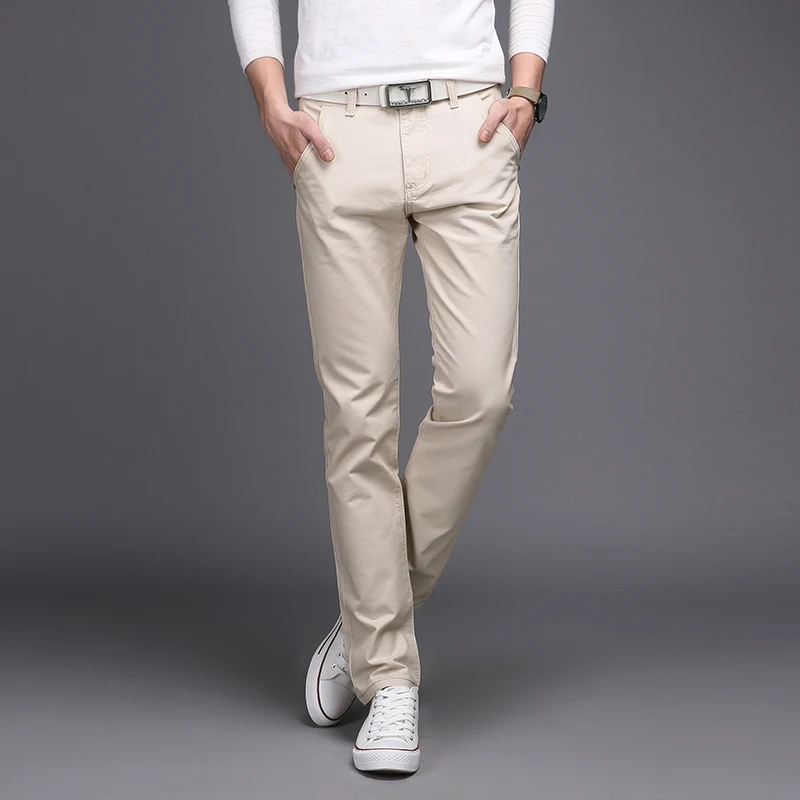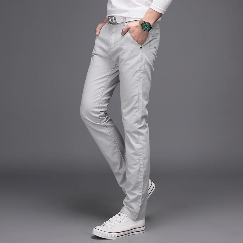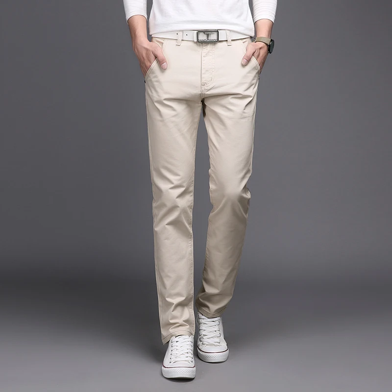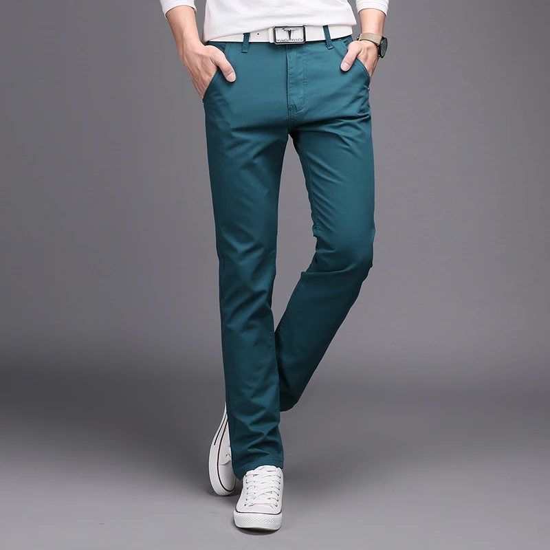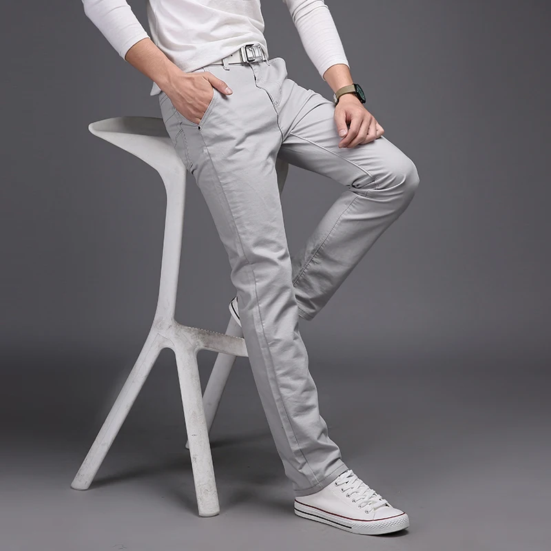 Классические повседневные мужские брюки, деловой стиль, удобные хлопковые облегающие Прямые повседневные штаны, 9 цветов, на лето