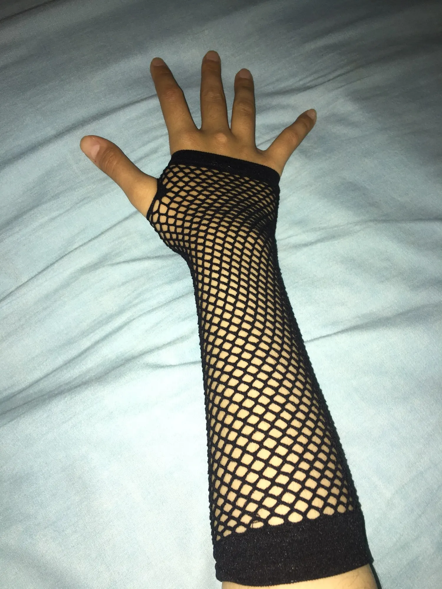 Новые модные неоновые сетчатые без пальцев длинные перчатки с манже...