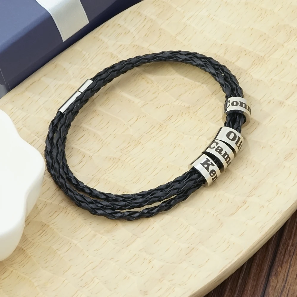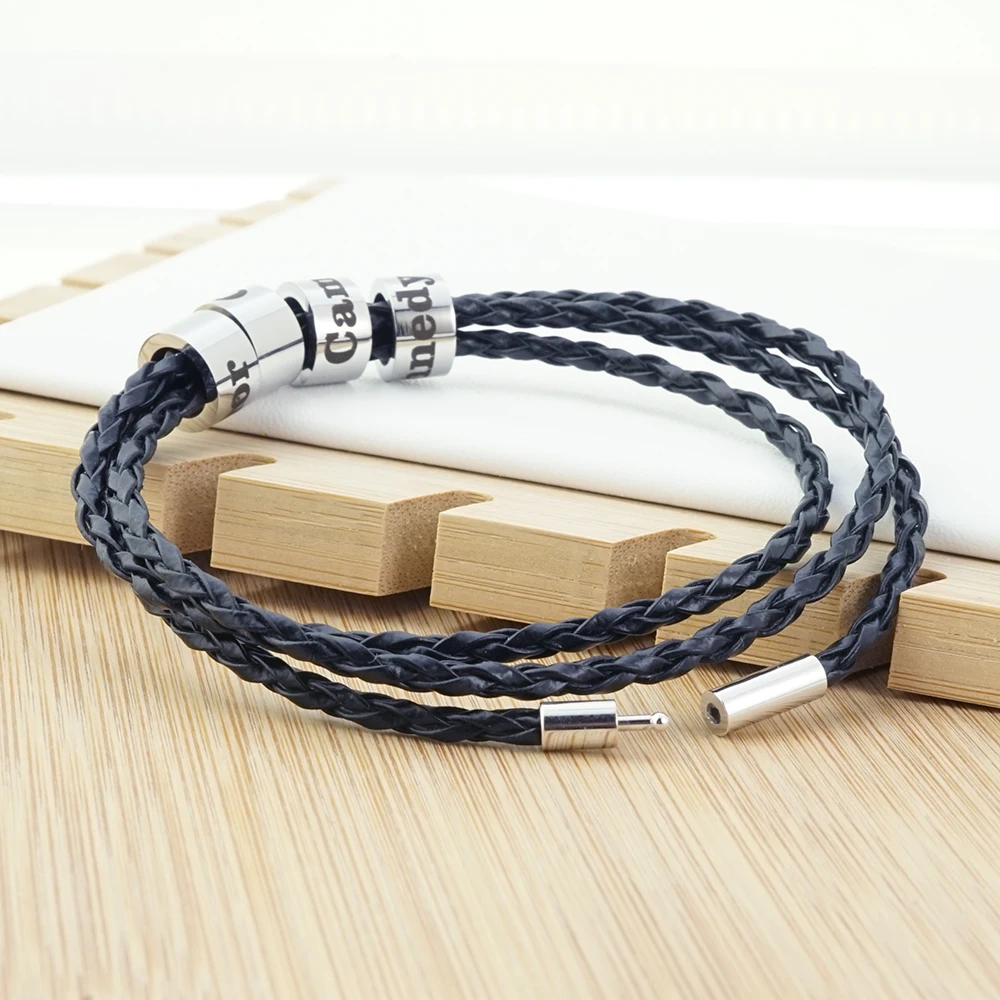 Плетеный браслет из натуральной кожи для мужчин, из нержавеющей стали, с бусинами на заказ