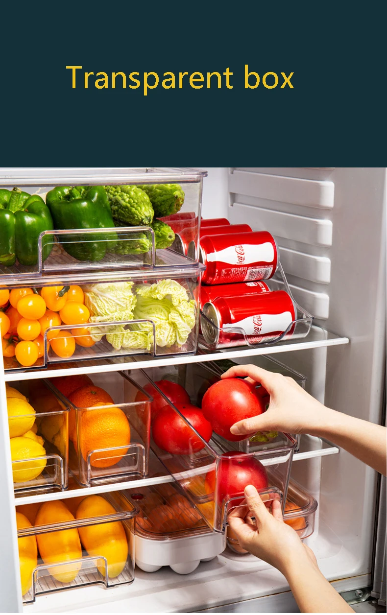 Ящик-органайзер для холодильника, прозрачная корзина для фруктов, контейнер для хранения продуктов, прозрачная корзина для хранения в холодильнике, контейнеры для кладовой, морозильной камеры