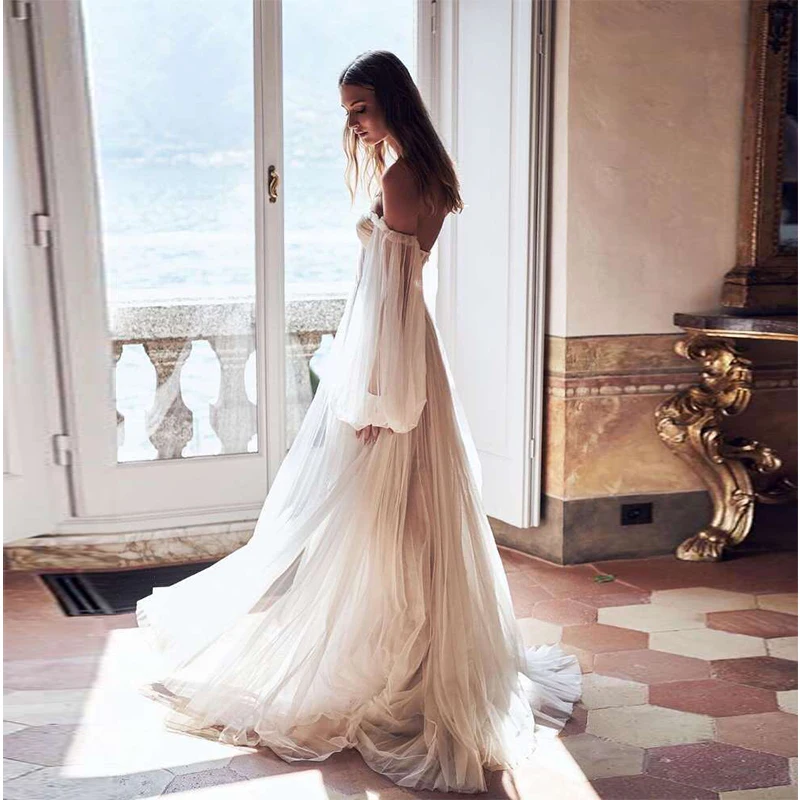 Свадебное Платье Иллюзия богемный Тюль Свадебные платья...