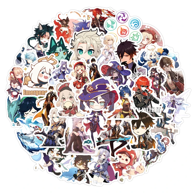Наклейки с героями мультфильмов Genshin Impact, 103050 шт.компл., для чемодана, подарка, наклейки для ноутбука, компьютера, холодильника, скейтборда, багажника