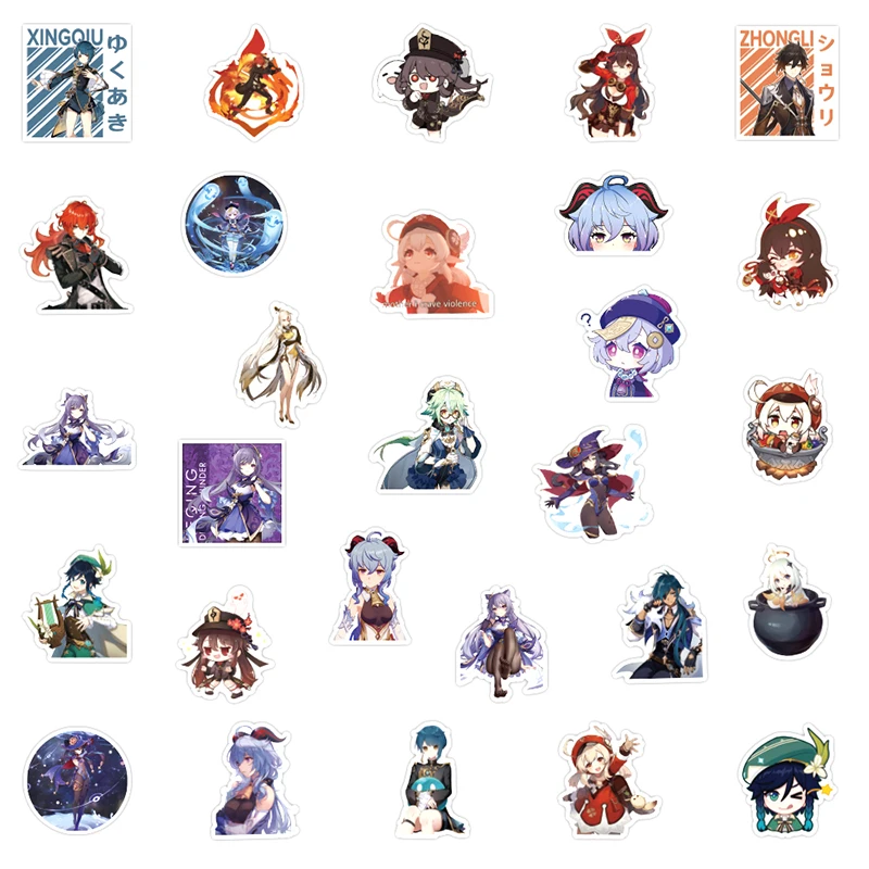 Ударопрочные наклейки Genshin с мультяшными героями 103050 для мебе...