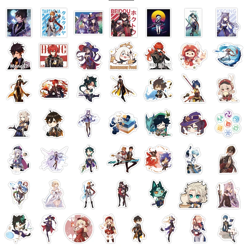 103050 шт.упак. Genshin, мультяшная фотоэтикетка для холодильника, автомобильного шлема, рукоделие, ноутбук, скейт, багажник