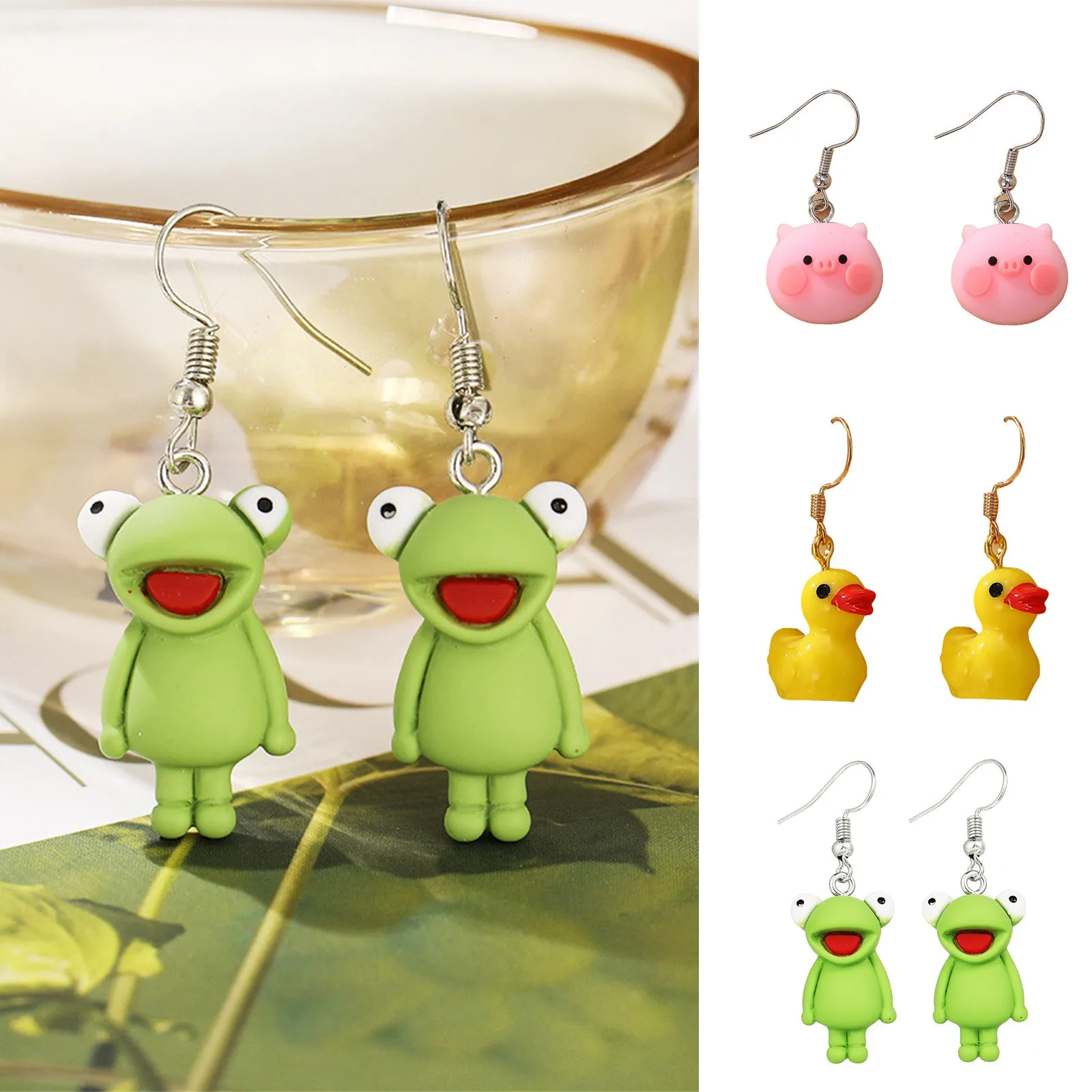 Висячие серьги для женщин и детей, Смешные Зеленые лягушки, животны...