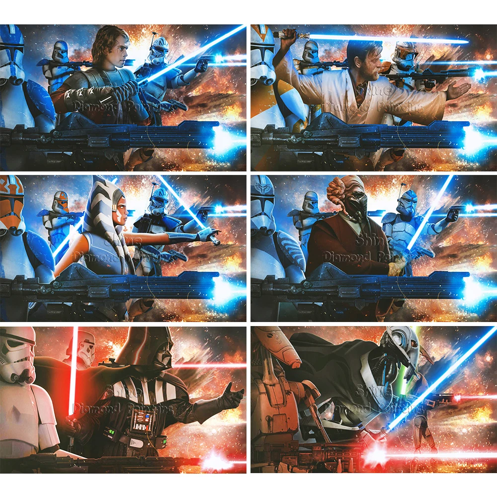 Алмазная 5D картина Звездные войны, сделай сам, лазерный меч, полноразмерная круглая вышивка, мультяшный пейзаж, вышивка крестиком, мозаика, домашний декор