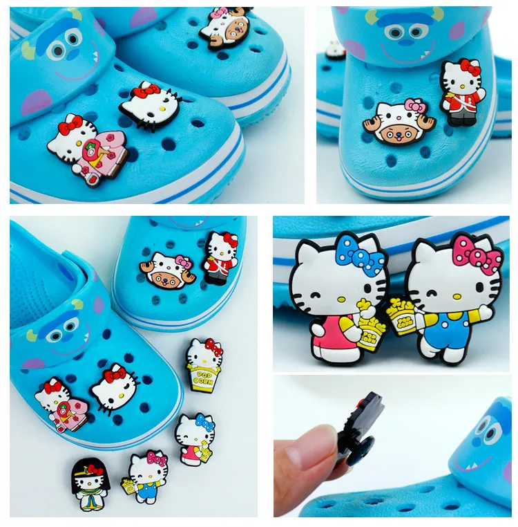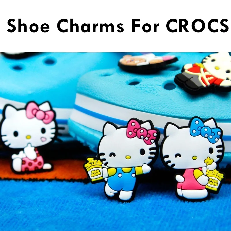 Милые аниме Кроксы, 1 шт., аксессуары для кошек, украшения из ПВХ, Мультяшные Значки для Hello Kittity Sanrio, Детские значки