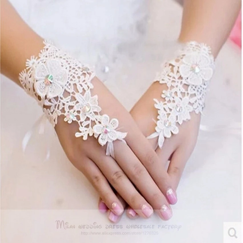 Перчатки женские короткие кружевные белыецвета слоновой кости, до запястья