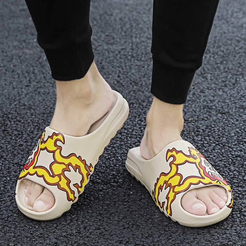 Шлепанцы мужские из ЭВА, повседневные пляжные тапки с граффити, роскошные Мультяшные сланцы, домашние тапки, 2021