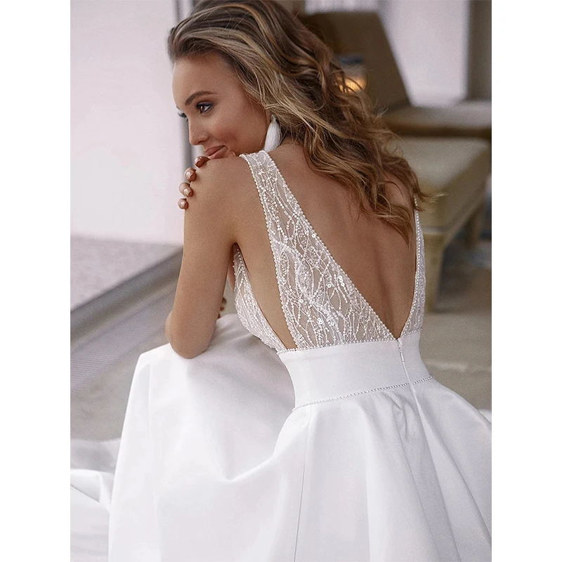 Свадебные платья без рукавов, ТРАПЕЦИЕВИДНОЕ атласное Свадебное платье с блестками, женское стильное платье с открытой спиной, 2022