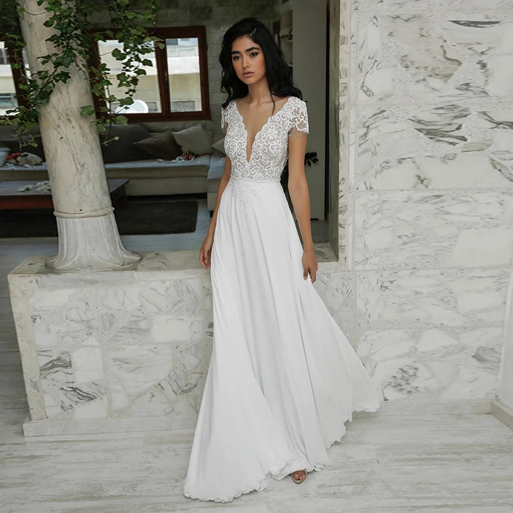 Свадебные платья, сексуальное шифоновое пляжное кружевное платье с v-образным вырезом...