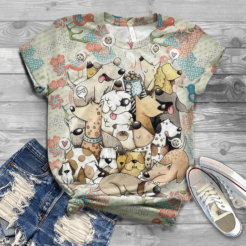 Новинка 2021, лидер продаж, летняя рубашка с коротким рукавом, 3 дт, футболка с рисунком собаки, футболка с коротким рукавом для пары, Повседневная рубашка с животными