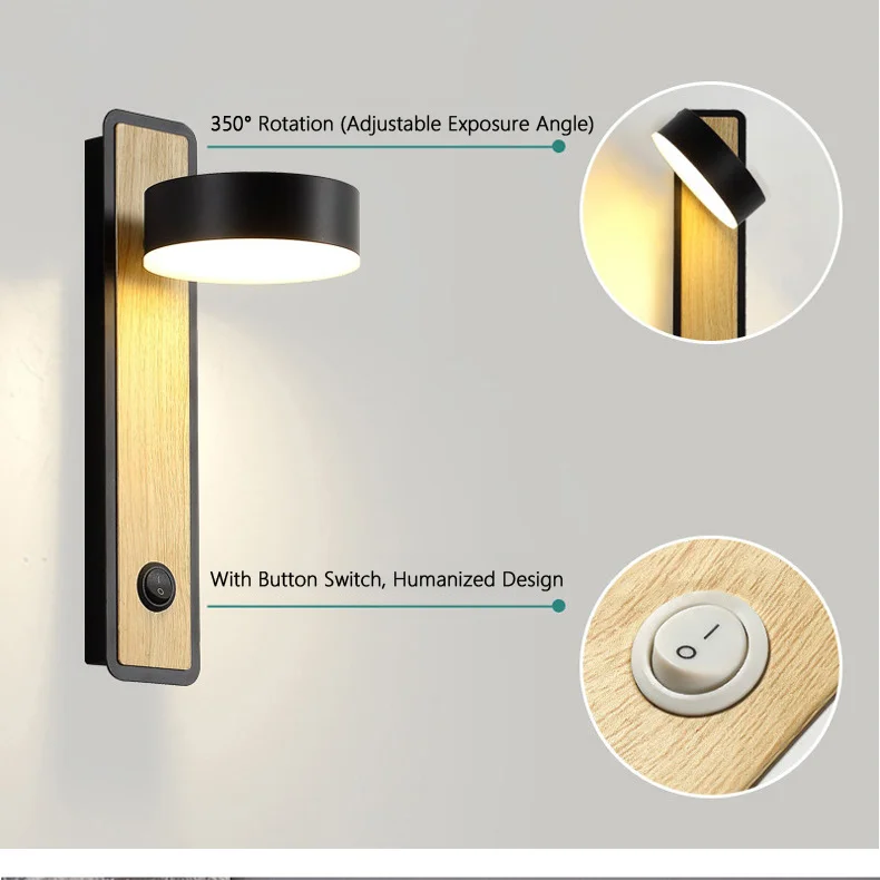Настенные светильники в скандинавском стиле, вращающийся прикроватн...