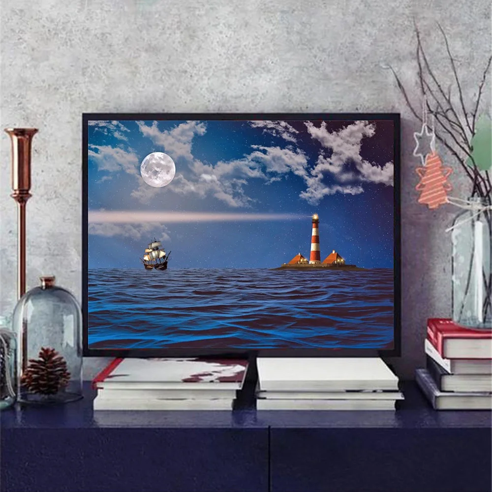Алмазная 5d живопись HUACAN, полноразмерная мозаика с мотивом маяков, морская вышивка сделай сам, украшение для дома, подарок ручной работы