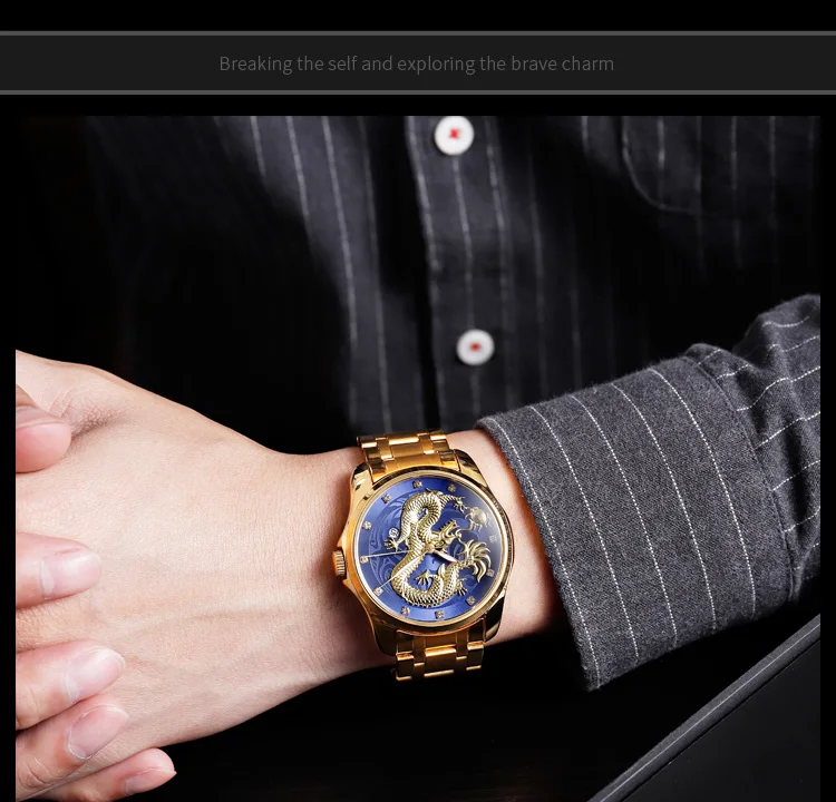 Лучший бренд SKMEI Роскошные мужские часы золотой дракон кварцевые часы мужские s водонепроницаемые Дата дисплей Нержавеющая сталь ремешок наручные часы мужские