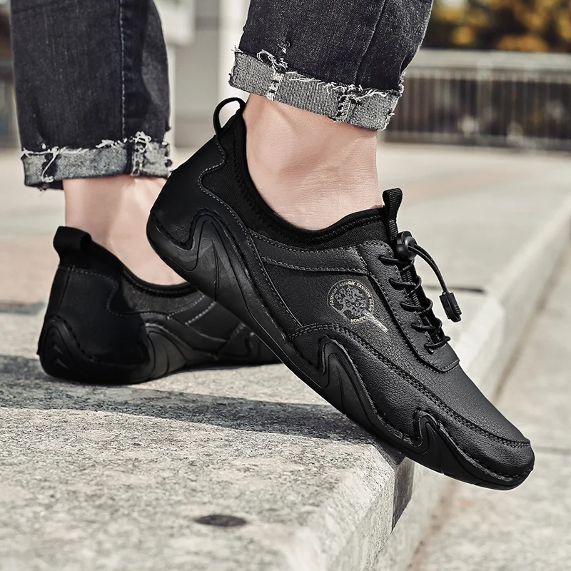 Мужские кожаные лоферы на шнуровке, черные повседневные Мягкие Неск...