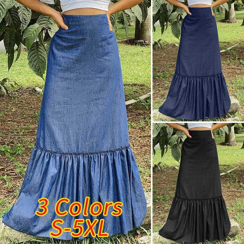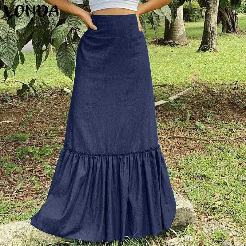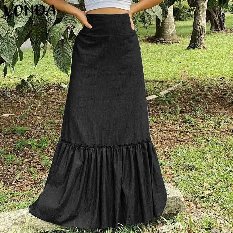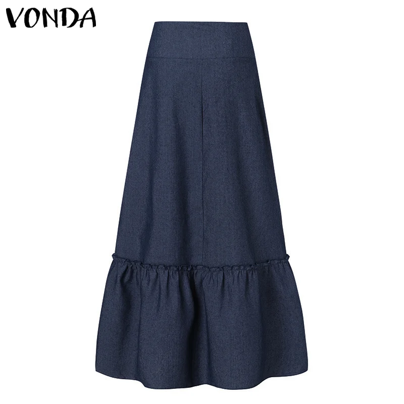 Женская длинная джинсовая юбка-макси VONDA 2021, Женская офисная юбка, винтажная Праздничная трапециевидная юбка с высокой талией, женские юбки