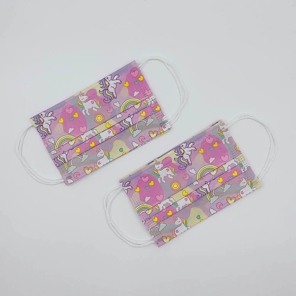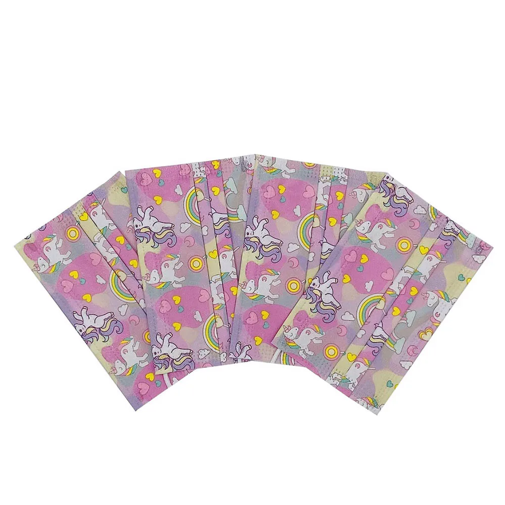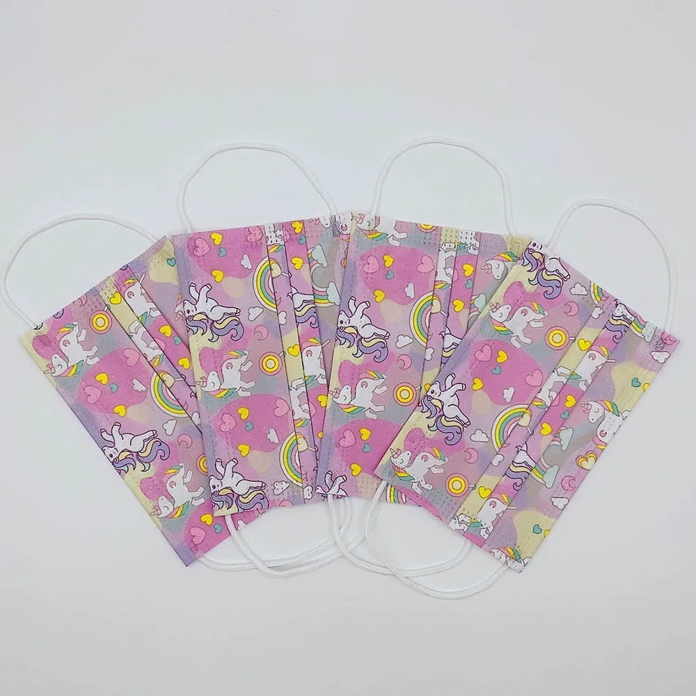 50100150200 шт. одноразовые взрослые маски для рта детские милые Мультяшные маски для лица с рисунком единорога 3-слойная защитная маска от пыли