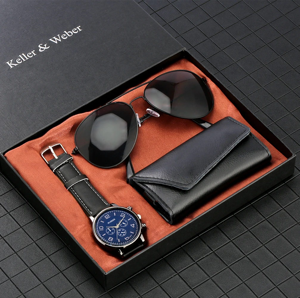 Часы-1 шт., бумажник-1 шт., солнцезащитные очки-1 шт., Подарочная коробка-1 шт., подарочная карта-1 шт.