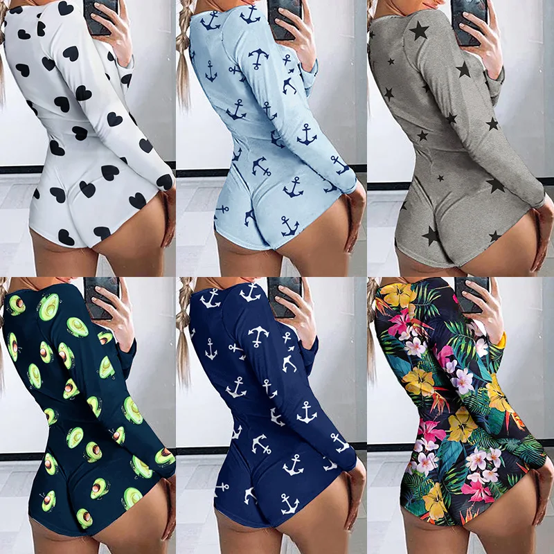 Сексуальное Женское боди с длинным рукавом, глубоким V-образным вырезом, облегающее эластичное трико, короткий топ на пуговицах, короткий комбинезон, пижама