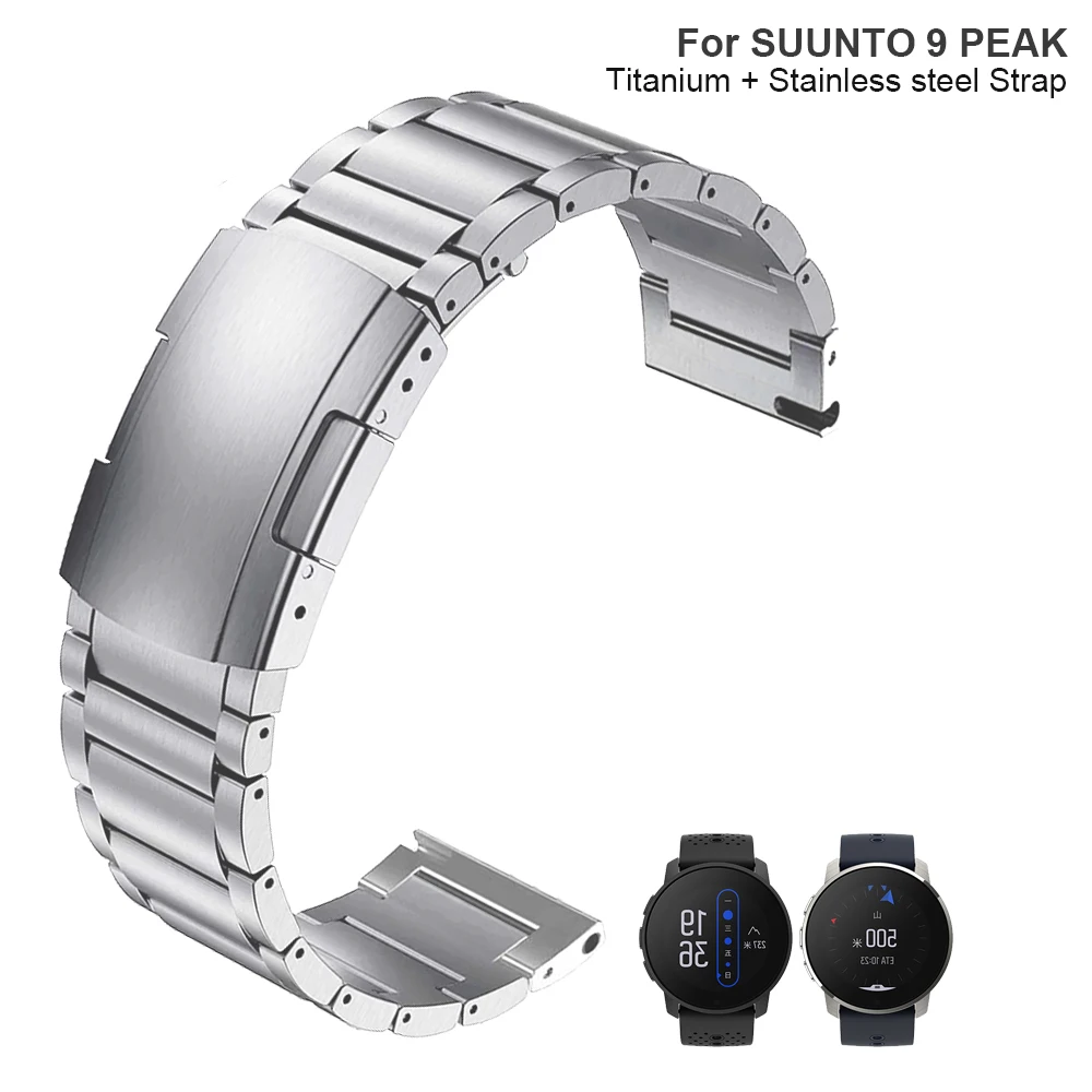 Ремешок для часов Suunto 9 Peak, черныйсеребристый браслет из титана и металла, со стальной застежкой, Сменные аксессуары