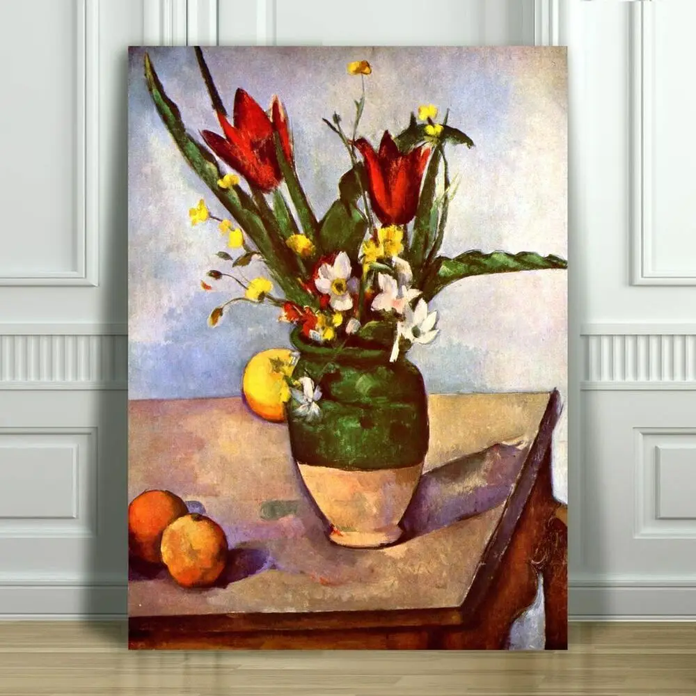 PAUL CEZANNE-цветы в вазе и фруктах #2-холст Художественная печать плакаты-12x8 дюймов; Холст плакаты живопись цельный Декор
