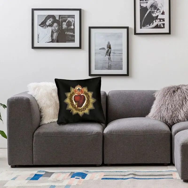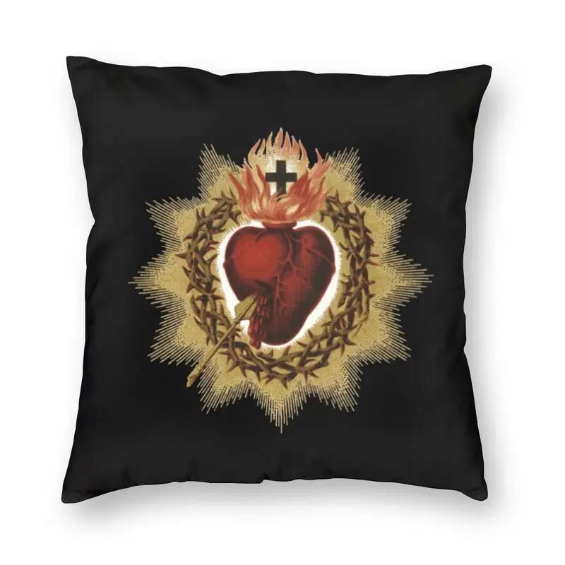 Мягкий декоративный чехол для подушки с изображением Священного Сердца искусственной кожи, квадратная наволочка 40x40, наволочка для дивана