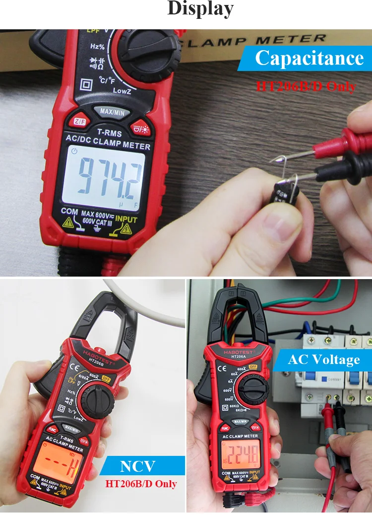 Мультиметр HT206D с зажимами и автонастройкой диапазона, 600 в