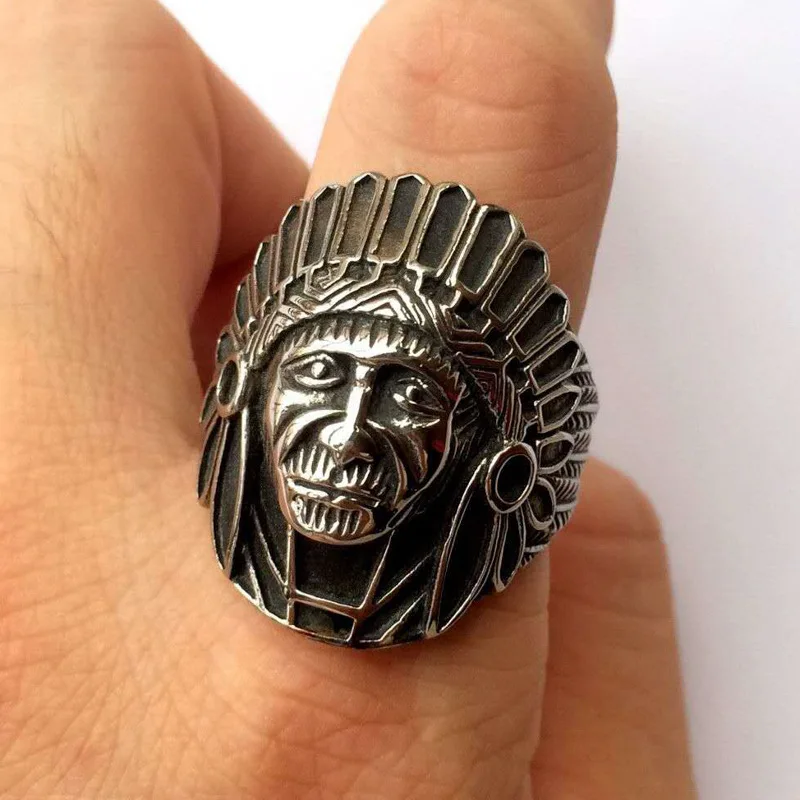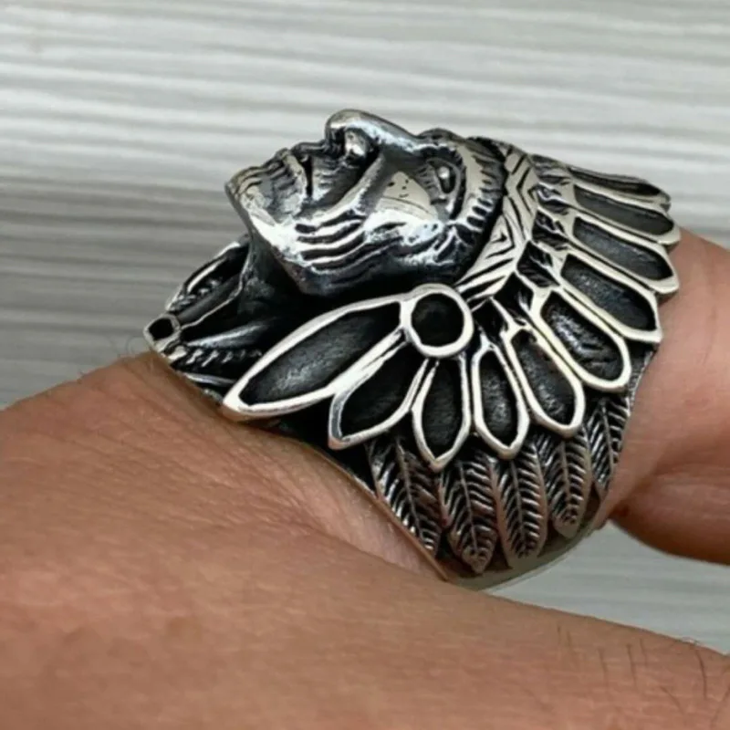 Индийское мужское кольцо с узором головы, волк, охотник, племя, лид...