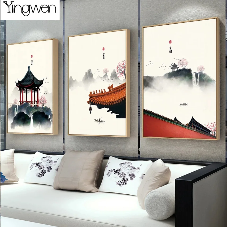 Китайская Дворцовая архитектурная картина с бриллиантами Настенная картина-Триптих полная Алмазная вышивка крестиком набор декора
